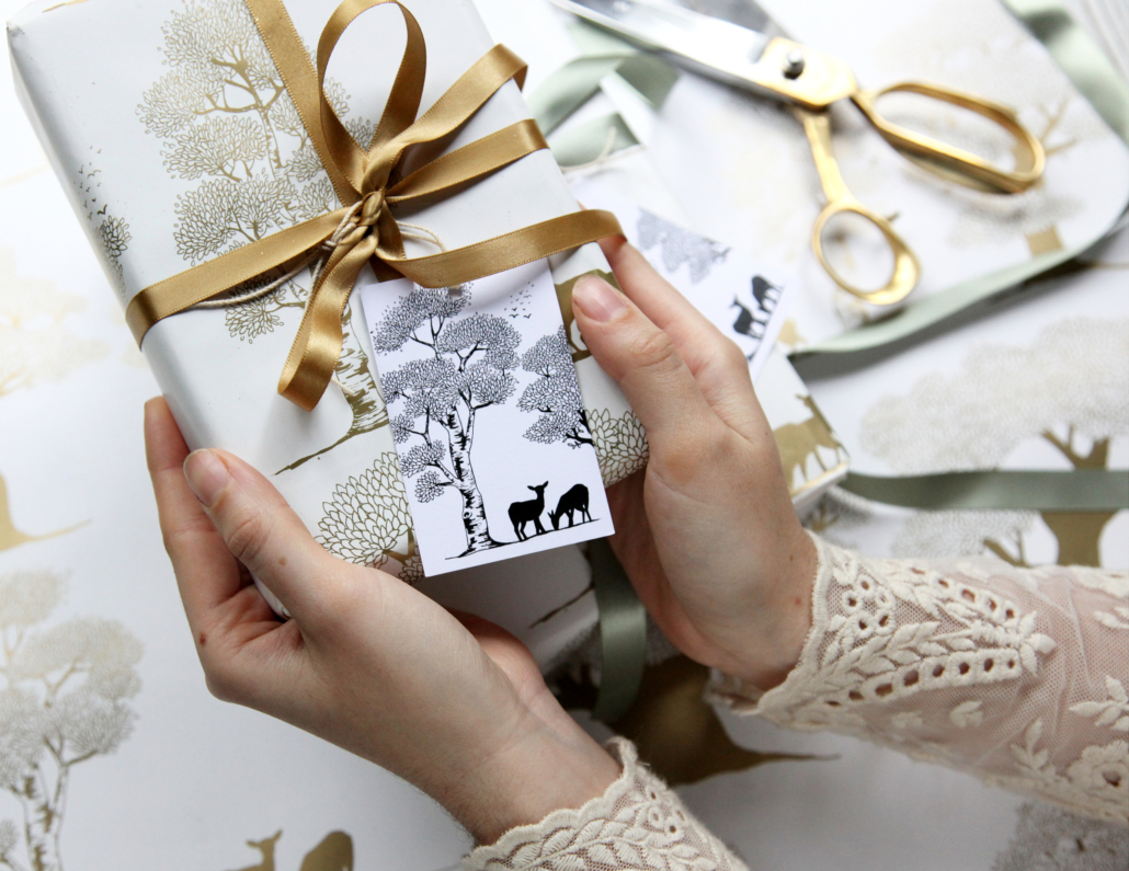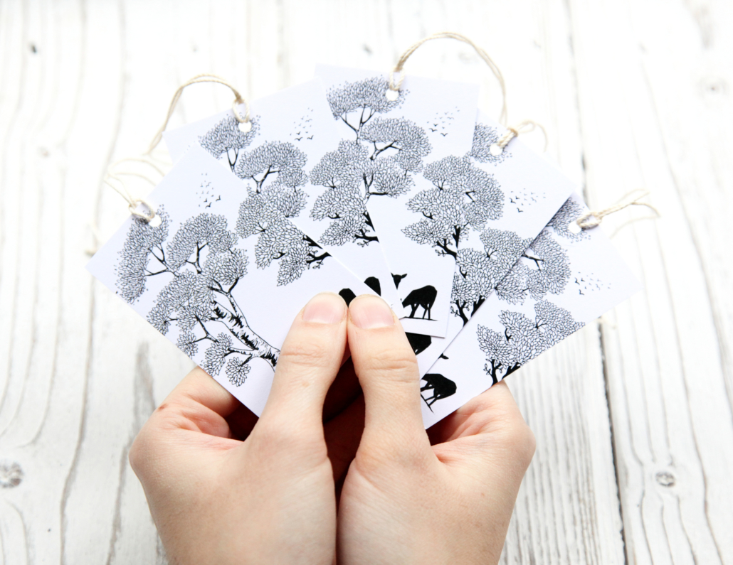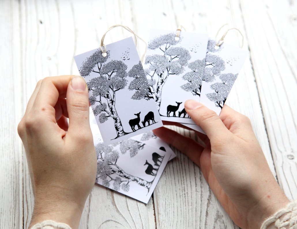 These versatile, enchanted forest gift tags in white and black are perfect for any occasion be it a wedding, Christmas or special birthday. They come as a set of five and have matching wrapping paper available.